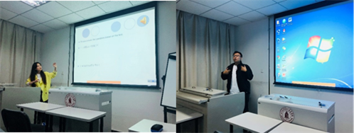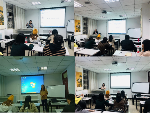 王丹老师首先介绍了本学期公共汉语教学室的基本情况,接着阚丝羽、刘伊辛和吴靖楠老师给大家展示了自己上课的课件,并详细介绍了自己的课程安排、教学步骤。针对公共汉语教学的特殊性,老师们还重点交流了各自进行课堂管理的宝贵经验,就如何增强课堂互动、提高学生开口率、鼓励学生的学习兴趣等进行了热烈的讨论。