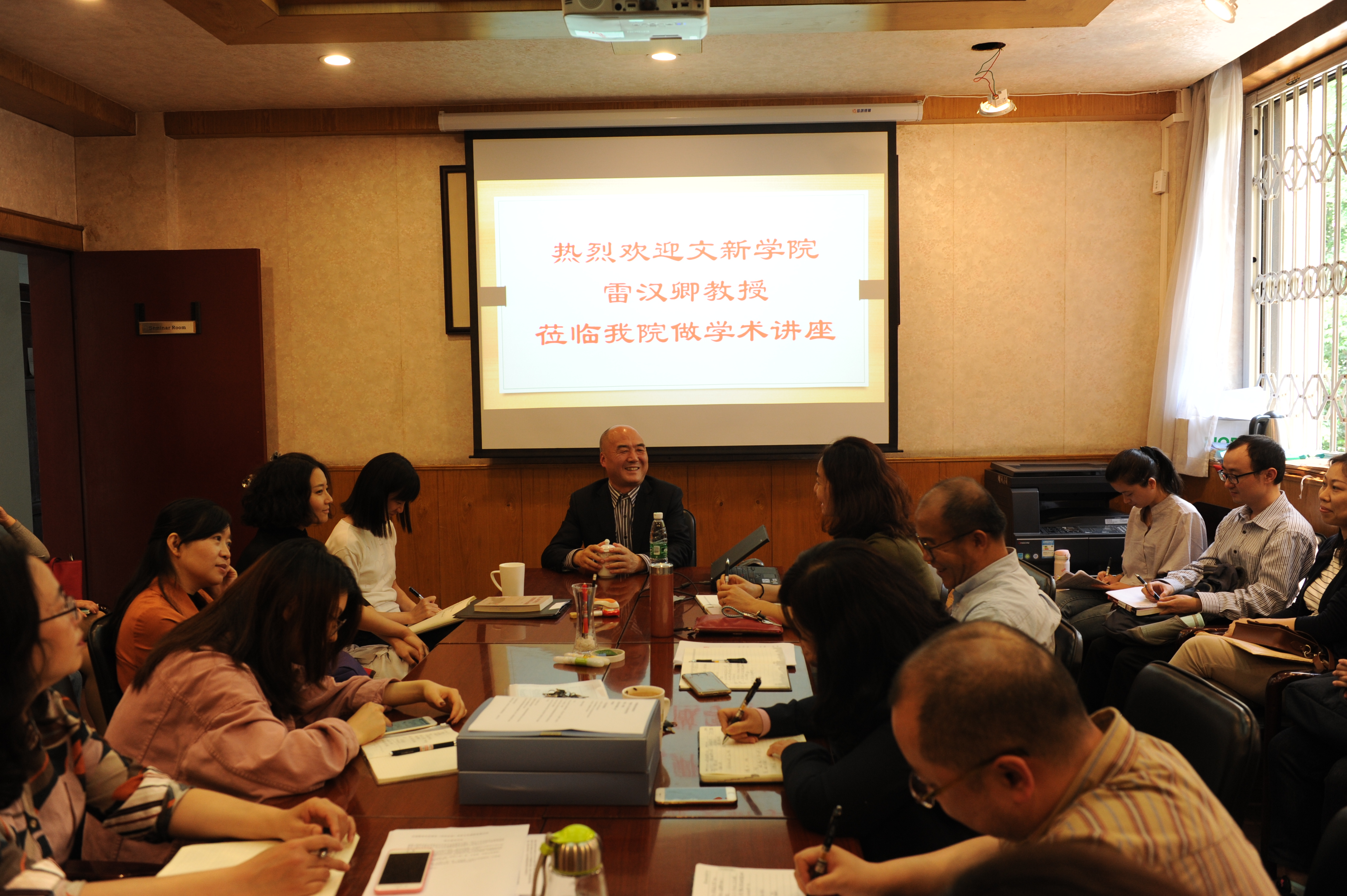 2018年5月11日下午,四川大学文学与新闻学院中文系教授、教育部人文社科重点研究基地——中国俗文化研究所专职研究员、汉语言文字学和语言学与应用语言学专业博士生导师、中国训诂学研究会常务理事雷汉卿教授莅临我院,为全院教师作了有关学术发展、学术生涯规划的精彩报告,并与教师们分享了自己的学术研究心得。