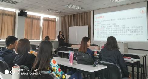 周丹老师课题组的汉语国际教育背景下《中国文化》课教学理念及方法创新。以留学生《中国文化》课程作为研究对象和实践平台,以帮助教师转变教学观念,调整教学内容及策略,培养热爱中国文化的“跨文化沟通者”,推动中华文化的国际传播为项目研究目的。围绕课题,项目组已开展各种文化体验活动,课堂互动课下交流以及学生学习成果展现,课程管理考核以及学生评价等。目前该研究在前期调研的基础上已形成2篇论文,其他相关研究也在同步进行。
