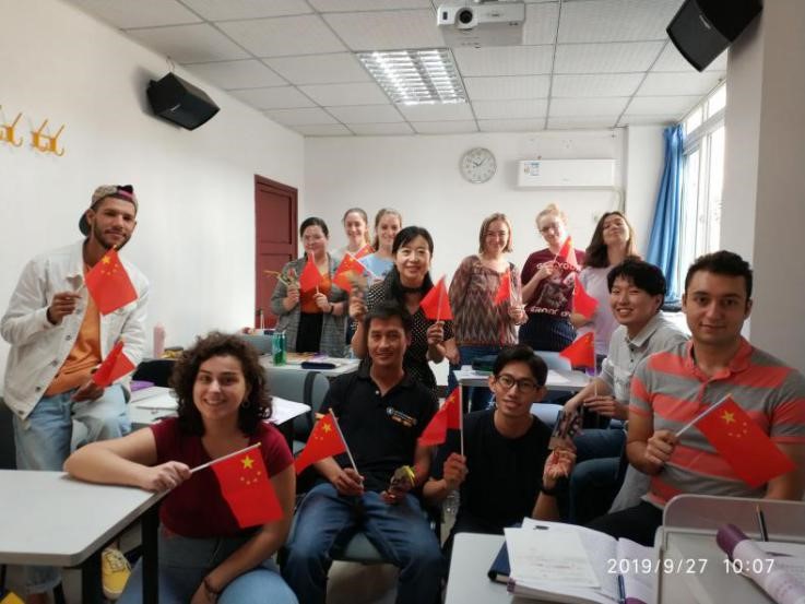 为庆祝中华人民共和国成立 70周年,2138CC太阳集团师生开展了主题庆祝活动,学院院长高伟教授带队参加了学校于9月29日举行的“我和我的祖国——四川大学庆祝中华人民共和国成立 70周年升国旗仪式”。同时,全院来自60多个国家的近500名外国留学生用汉语和自己国家的语言表达了对中国的祝福,他们祝愿中国繁荣昌盛,希望中国未来越来越好。
