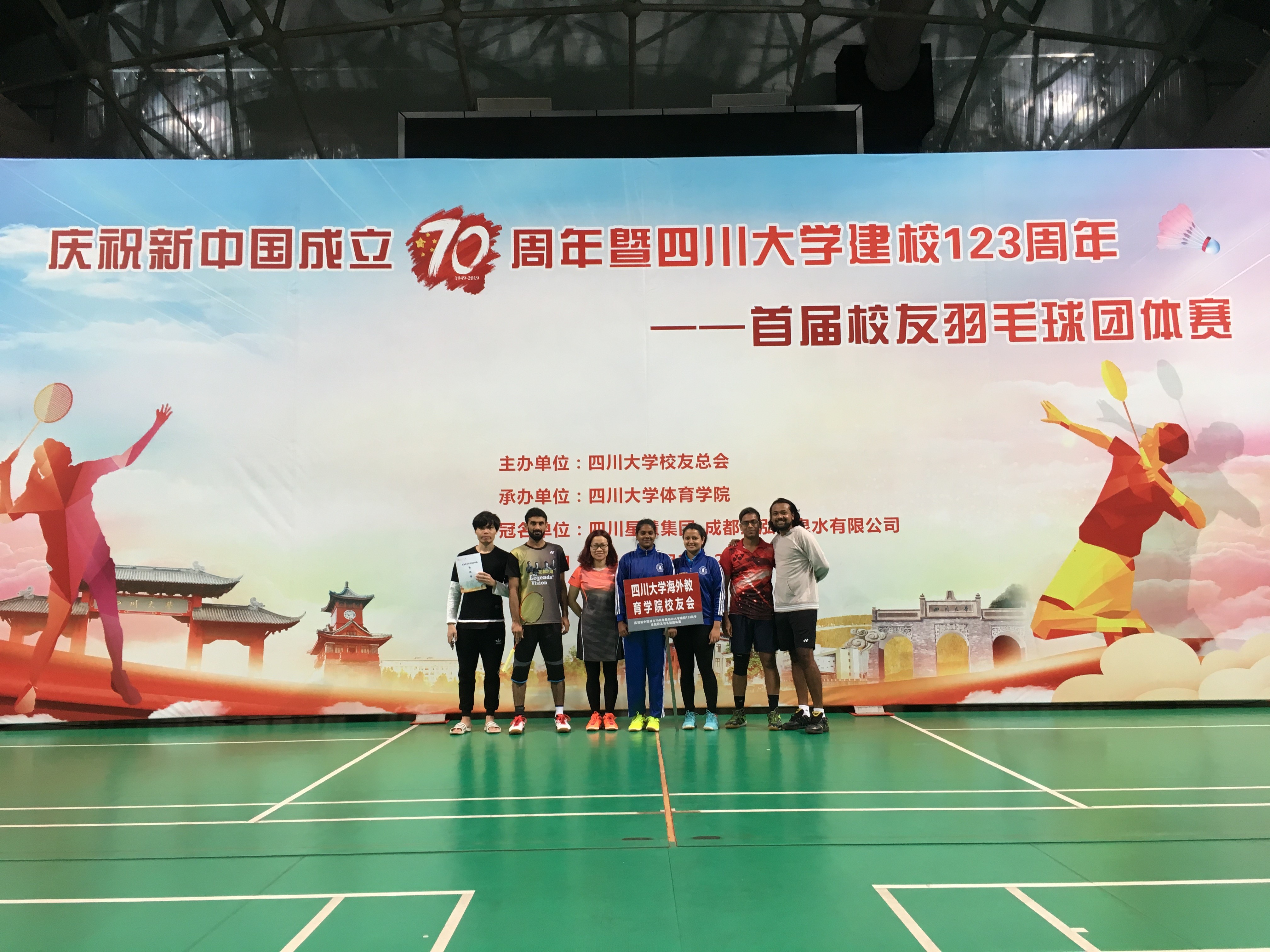 9月21日-22日,为庆祝四川大学123周年华诞,四川大学首届校友羽毛球团体赛在四川大学望江体育馆举行,共有18支代表队,近200位队员参赛,海外教育学院校友组队参加比赛,获得第四名的佳绩。