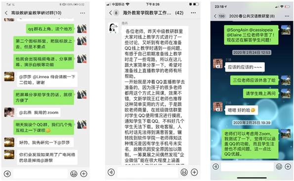 学院积极探索适应留学生语言教学的多元化的在线授课方法和课程组织模式,力争非常时期的在线课程教学取得最好效果。各教研室积极收集各种网络教学资源,尽量整合各类优质资源用于在线课程;教学科组织教师参加了学校提供的在线教学平台使用方法培训,各教研室也对各种网络教学平台进行试用比较,选择最适合课程特点和语言教学模式以及留学生使用的平台作为授课主平台,并组织老师进行了多次平台的测试,反复试验如何使网络教学达到最佳效果。