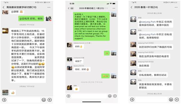 留学生因语言、习惯、网络环境和网络正政策常等因素的影响,与中国学生相比,在教学平台的选择和使用方面都具有一定局限性,部分学生在下载软件、申请使用账号等技术环节都遭遇障碍。对此,本着“不让一个学生掉队”的理念,均尽力进行一对一的精准辅导和帮助。在正式开课的前几天,学院组织老师和学生一起进行了数次网络课程的试验,提前了解学生在网课中可能遇到的问题,针对学生的反馈,进一步采取措施进行调整优化,保证教学效果。