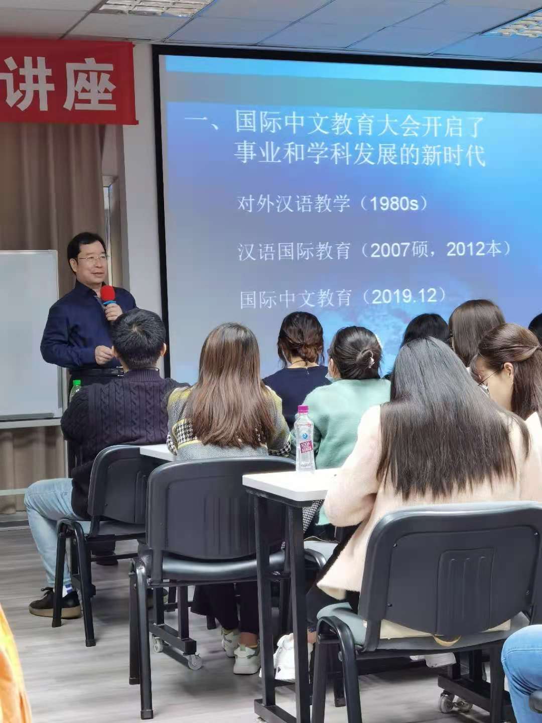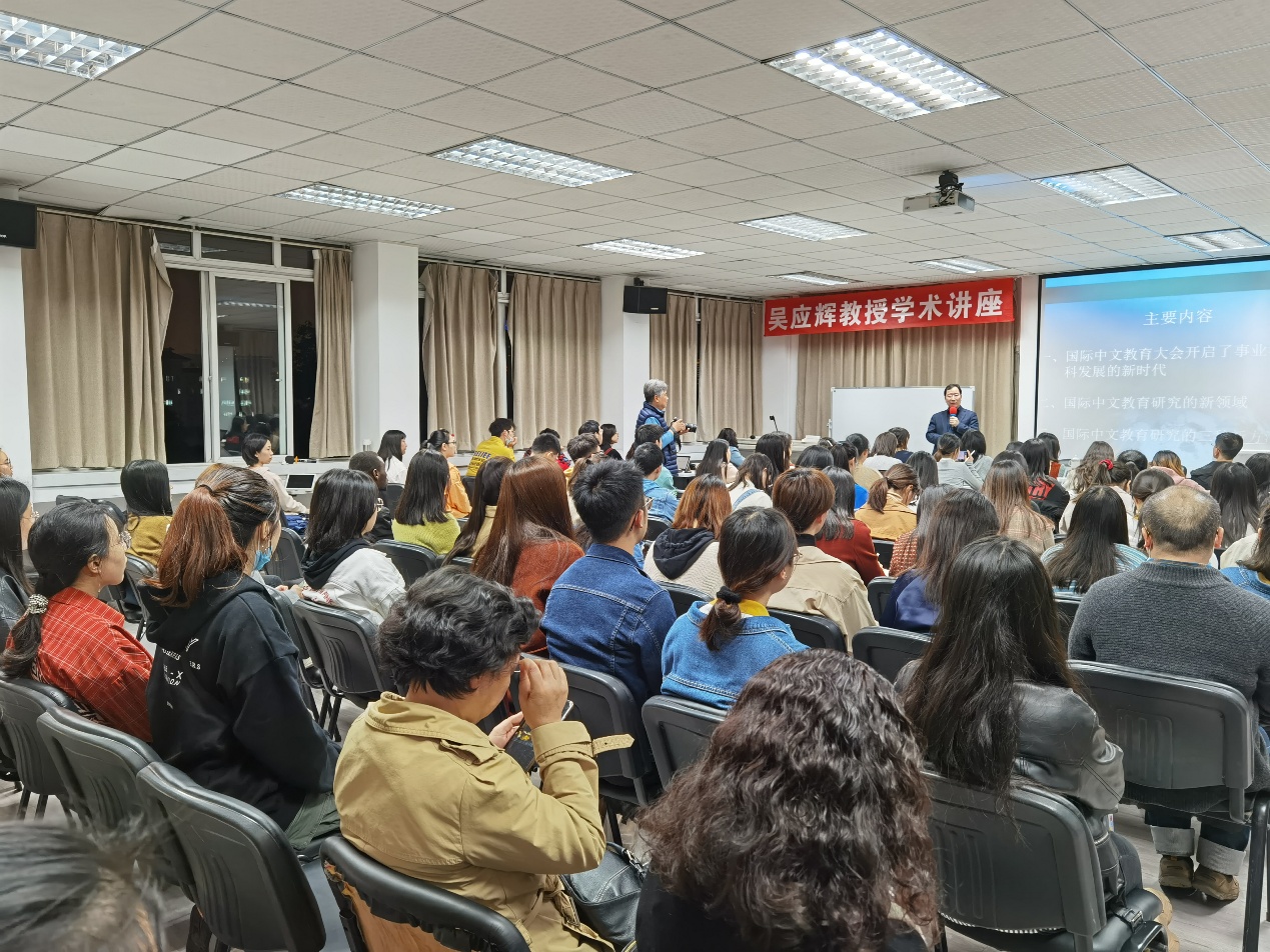 2020年11月13晚,北京语言大学汉语国际教育研究院院长、博士生导师吴应辉教授莅临我院六楼报告厅作了题为《国际中文教育的新动态、新领域与新方法》的学术讲座。我院多位教师、留学生以及汉语国际教育专业研究生参加了此次讲座,讲座由副院长雷莉主持。这也是海外学院20周年院庆活动之一。