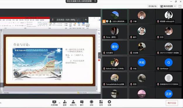 2021年12月2日晚,海外教育学院直属党支部书记、学院院长、宗教学博士高伟在海外教育学院203会议室为中国概况课程的学生做了题为“改革开放与中国的四十年”的专题讲座。