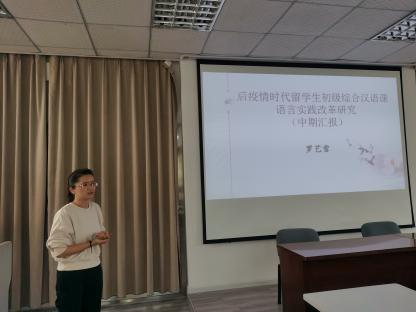 交流会上,海外教育学院书记、院长高伟强调了高校教育教学改革的重要性,教改项目对学院教学研究以及教师发展的促进作用。副院长雷莉介绍了新世纪第九期教改项目的立项背景以及前期的基本研究情况。各项目的负责人或团队成员就项目实施基本内容、进展情况、项目已取得的阶段性成果、成果创新和应用情况、下阶段计划与预期成果等方面进行了交流,通过PPT辅助展示了调查问卷、数据分析、改革教案、阶段性成果图片、人才培养方案的等内容。