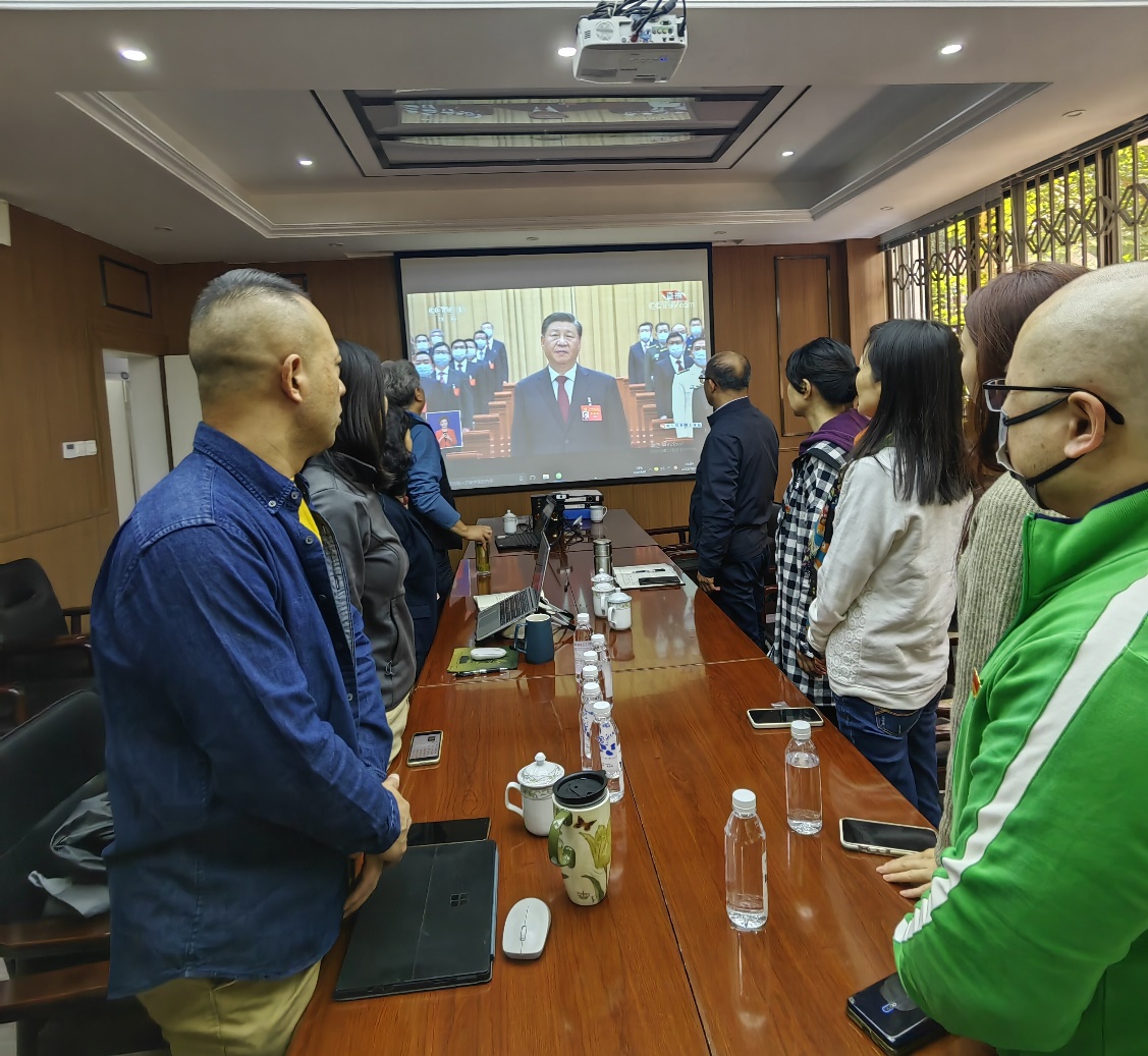 凝心聚力擘画复兴新蓝图,团结奋进创造历史新伟业。10月16日上午10点,中国共产党第二十次全国代表大会在人民大会堂盛大开幕,习近平总书记代表第十九届中央委员会向大会作报告。海外教育学院领导班子、全体支部委员、行政人员在学院二楼会议室集中观看盛会,教师在家收听收看盛会直播,用心领悟大会精神,共同见证这一庄严时刻。