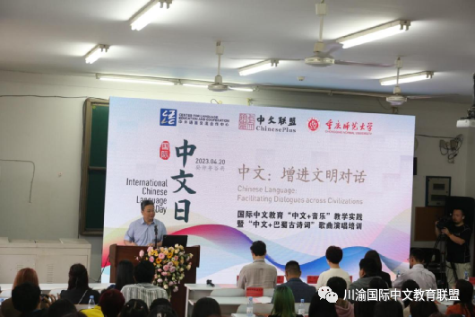 此次活动由“巴蜀古诗词”吟诵培训与“巴蜀古诗词”歌曲演唱培训两部分组成,分别由重庆师范大学文学院王于飞教授和国际汉语文化学院院长张礼慧教授主讲。培训旨在以巴蜀古诗词为切入点,深度挖掘音乐为载体的中华优秀传统文化,探索音乐与语言技能教学的融合创新,突出古诗词的艺术表演,发挥音乐在文化传承及国际中文教育中的积极作用,是国际中文教育教学的新方法、新举措。