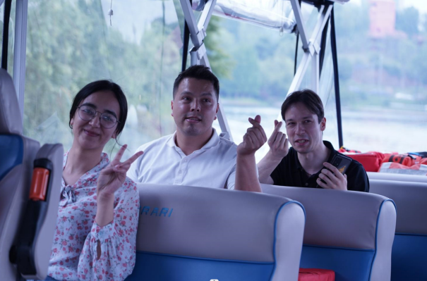 本次参与调研的三名来华留学生分别是,来自乌兹别克斯坦的朵拉、德国的史隽森和哥伦比亚的蓝冬少。本次的调研之行有三个点位,分别是天府新区数字文创城、天府新区中央商务区以及麓湖公园社区。