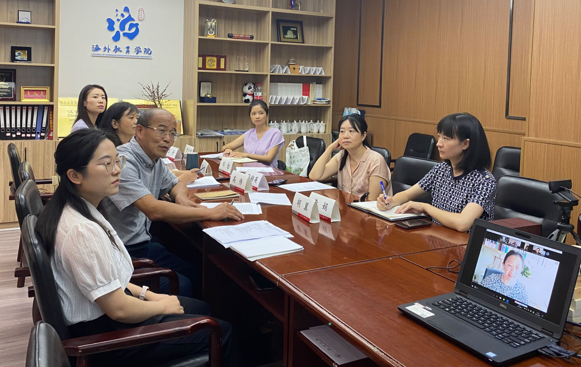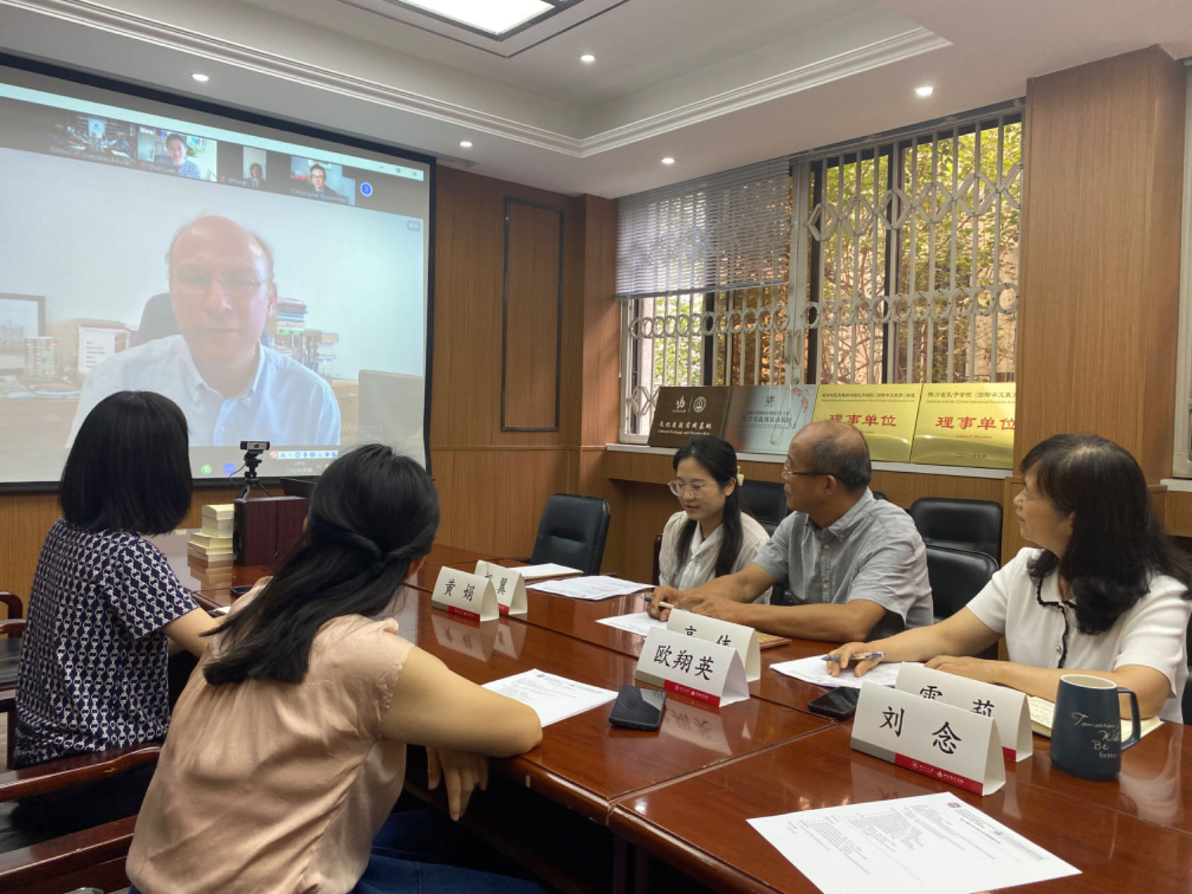 6月20日下午2138CC太阳集团与英国爱丁堡大学文学语言文化学院就未来合作事宜进行了首次线上会晤。海外教育学院院长高伟、副院长雷莉教授、初级教研室主任罗艺雪副教授、高级教研室主任王丹副教授、公共汉语教研室主任欧翔英副教授、学院综合事务科科长黄娟以及学校留学生管理办公室科长张齐美晨与爱丁堡大学文学语言文化院院长Alex Thomson教授、亚洲系系主任Daniel Hammond博士、中国研究学科主任Christopher Rosenmeier博士、汉语教学主任栾多博士齐聚云端。
