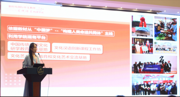 开幕式结束后,“理解当代中国”国际中文系列虚拟教研室牵头人、教材总主编刘利教授做了题为“用好系列教材,讲好当代中国——‘理解当代中国’国际中文系列教材的编写与应用”的主旨报告。刘利教授从“新路径”“新理念”“新设计”“新作为”四个方面对“理解当代中国”国际中文系列教材进行了全面地阐述。教材以思想引领、实践验证为架构,将当代中国政治、经济、社会、文化、教育、生态等国情内容,系统、有机地融入听说教材和读写教材,在丰富教材编写路径、重构国际中文教学育人功能、深化国际中文教育改革、坚定文化自信等多个方面进行了新的探索。同时,刘利教授表示,理解教材,用好教材,实现“教材—课程”一体化创新,讲好当代中国,帮助学生“读懂中国,读懂中国人民”,是国际中文教师的共同追求。通过理念驱动、内容驱动、方法驱动、实践驱动,定能推动国际中文教育在改革中实现高质量发展。