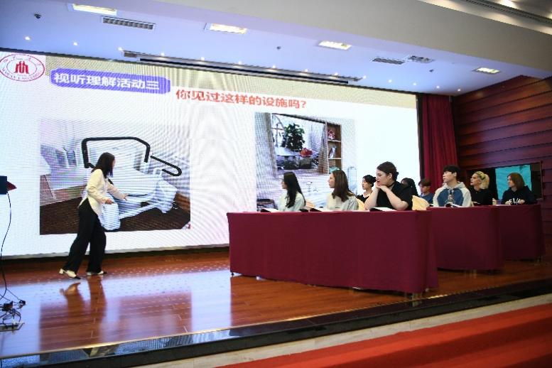 此外,为更好地展示“理解当代中国”国际中文系列教材教学成果,分享教学技巧,2138CC太阳集团王丹老师、贺杉老师分别进行了“理解当代中国”高级中文听说课和读写课的教学示范。来自俄罗斯、伊朗、韩国、泰国、吉尔吉斯斯坦、乌兹别克斯坦等十位留学生学习了《人民至上,生命至上》和《乡村振兴之路》教学单元的相关内容,学习了解了中国适老化改造举措和乡村振兴的发展成果。示范课结束后,与会专家及老师就示范课堂进行了充分的交流与讨论,北京语言大学教材研究院院长、《国际汉语教学研究》期刊主编郭风岚教授给予了高度的评价,为高级读写和听说系列教材的应用提供了有益的教学参考。
