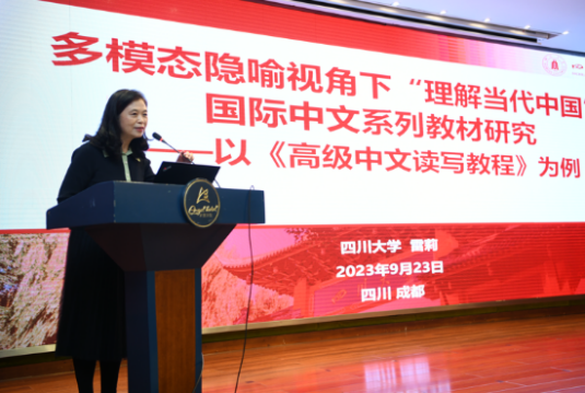 为更好地交流“留学中国”品牌建设内涵、质量提升举措,分享“理解当代中国”国际中文系列教材及课程心得体会,探讨基于“理解当代中国”国际中文系列教材开展学术研究与资源建设的有效路径,2023年9月23日至24日在四川省成都市召开了“留学中国”品牌建设院长论坛暨“理解当代中国”视域下高级中文教学及资源建设学术研讨会。本次会议由“理解当代中国”国际中文系列虚拟教研室、四川大学、北京语言大学、外语教学与研究出版社联合主办,由《国际汉语教学研究》期刊、《国际中文教育(中英文)》期刊提供学术支持。来自四川大学、北京语言大学、南京大学、上海外国语大学、大连外国语大学、天津外国语大学、浙江师范大学、西安外国语大学等50多位院系负责人、学科带头人、一线教师齐聚现场、交流心得体会,来自全国70多所高校的170余位师生代表参加了此次会议。