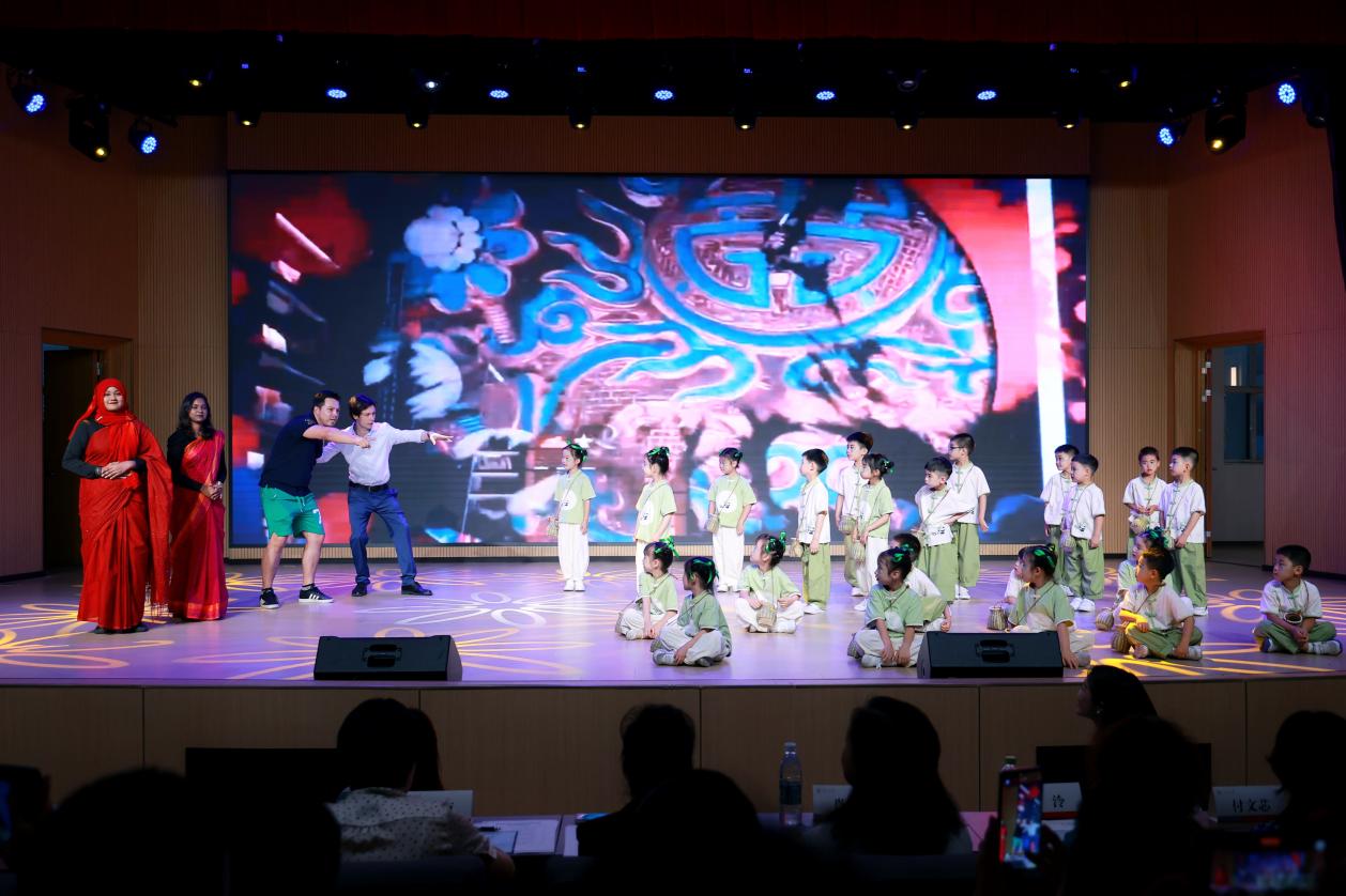 我院四名留学生史隽森(德国)、蓝冬少(哥伦比亚)、詹娜特和孙迪娅(孟加拉国)与四川大学第一幼儿园学生一起献上开场表演《趣说成都》,节目将快板和四川方言碰撞,乐趣十足地展现了蜀地文化的独特魅力。另外,史隽森同学还深情朗诵诗词《不朽》,致敬了中国革命先烈们坚强不屈、英勇无畏的不朽英雄精神。
