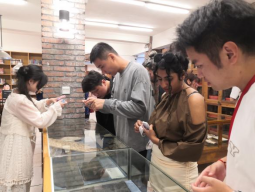 课程结束之后,校方安排的志愿者带领留学生参观了校园。该校校园是国内较为少见的以学堂为主题的国家AAA级旅游景区。学生们徜徉于文渊阁、文津阁等充满书卷气与厚重文化底蕴的传统风格建筑之间,仿佛正在经历一场世外桃源的文化回溯。将“川西古典家具博物馆”与“霍格沃兹魔法学院”合二为一的图书馆里,古色古香的陈设吸引着大家驻足拍照,艺术馆中,想象力天马行空的毕业生作品让大家惊叹不已,而热火朝天、设施齐全的运动场馆则让大家更加直观地感受到了方才在课上所讨论的体育教育知识。