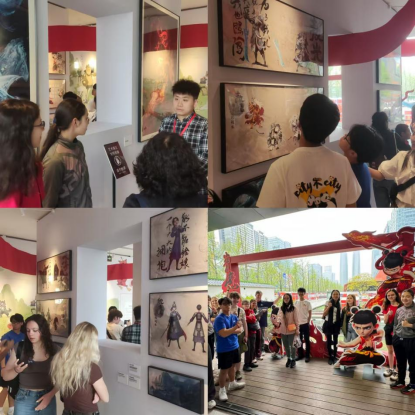 当前《哪吒2》已成为成都一张最具国际影响力的名片,美国青年们在来中国前已对该电影充满浓厚兴趣。本次春令营亮点之一,为参观成都交子书院举办的《哪吒2》创作图片展,为美国师生打开了一扇了解中国当代动漫艺术的窗口。展览以"不破不立"为主题,通过丰富的展品和互动设计,生动展现了传统神话的现代表达。