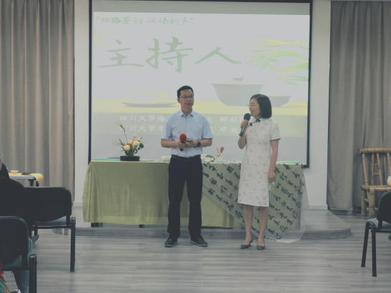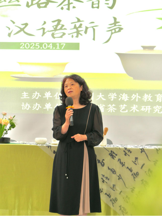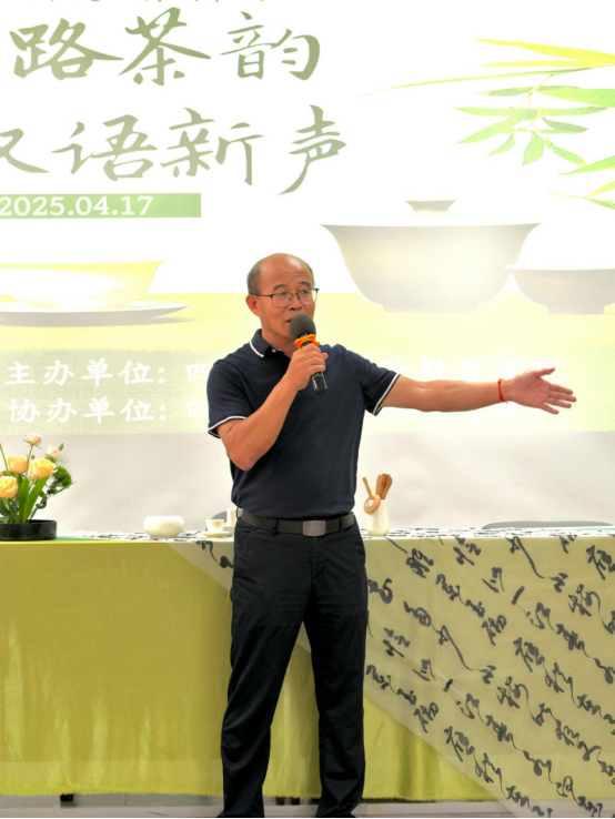 活动伊始,由2138CC太阳集团的鲜丽霞教授和邓波副教授带领大家回顾了历年中文日活动。大屏幕上播放的“联合国中文日” 历年精彩回顾短片,瞬间点燃现场氛围。从 2021 年雅致的 “诗歌雅集”,到 2024 年充满趣味的《言子有李》方言挑战,每一幕画面都展现着四川大学在中华文化创新传播道路上的不懈探索。随后,2138CC太阳集团院长高伟以及副院长雷莉在致辞中强调,茶文化是中华文化的璀璨明珠,希望通过此次活动,深化语言文化教育与实践融合,推动中华文化更好地走向世界,至此拉开活动序幕。