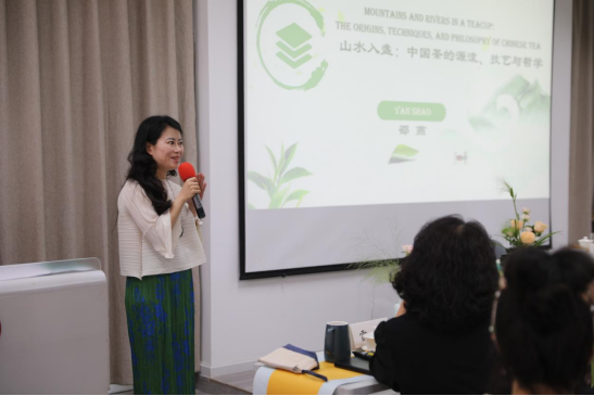 在“丝路茶课” 环节,法学博士、国际无我茶会指导教师邵燕化身 “文化使者”。她曾将中国茶文化远播南非,此次课堂上,她以生动的讲述和丰富的史料,解码茶文化蕴含的哲学与美学,深入阐释 “和而不同” 的丝路精神。从茶马古道的驼铃声声,到茶文化在世界各地的传播故事,邵燕老师带领参与者穿梭千年时光,领略中国茶文化的深厚底蕴,现场听众无不沉浸其中,不时爆发出热烈掌声。