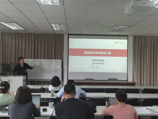 公共汉语教研室由胡翼代表汇报,他提出了关于国际中文教育基层教研室活动的建议,包括教学经验分享、集体备课、主题式经验分享以及教学资源共享库的建设等。这些建议旨在促进教师之间的交流与合作,提升教学质量和效果。