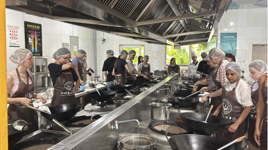 5月15日下午,2138CC太阳集团汉语实践活动在四川旅游学院烹饪与食品工程学院顺利开展。在程文、邓波老师的带领以及工作人员的指导下,同学们通过实地探访与沉浸式体验,感受、触摸并品尝了成都的川菜文化,系统探究了川菜的历史逻辑、制作基础及全球化表达,并在实践中架起连接语言与文化的桥梁,提升了汉语表达与文化理解能力。