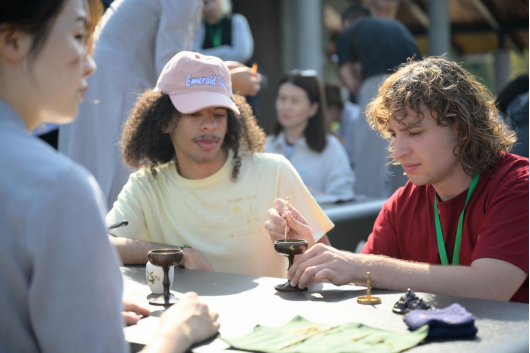 研学活动紧扣“文明探源”“生态宜居”“乡村振兴”“非遗传承”等主题,留学生们参访了乐山大佛景区、三星堆博物馆、金沙遗址博物馆,探寻文化遗产与古蜀文明;在德阳市旌阳区欣赏了川剧变脸,在高槐村体验了潮扇扎染技艺,感知非遗工坊活态传承;在眉山市青神县体验了竹编非遗;在简阳市平武镇体验手工月饼制作,并参观了现代花卉基地;另外,留学生们还参访了成都环境监测大楼,感受公园城市的生态智慧。
