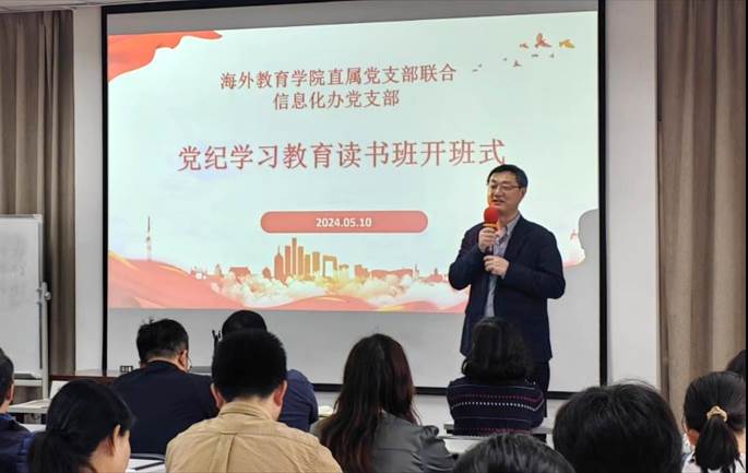 5月10日下午,海外教育学院直属党支部与信息化办党支部在海外教育学院六楼多功能厅联合举行党纪学习教育读书班开班式。