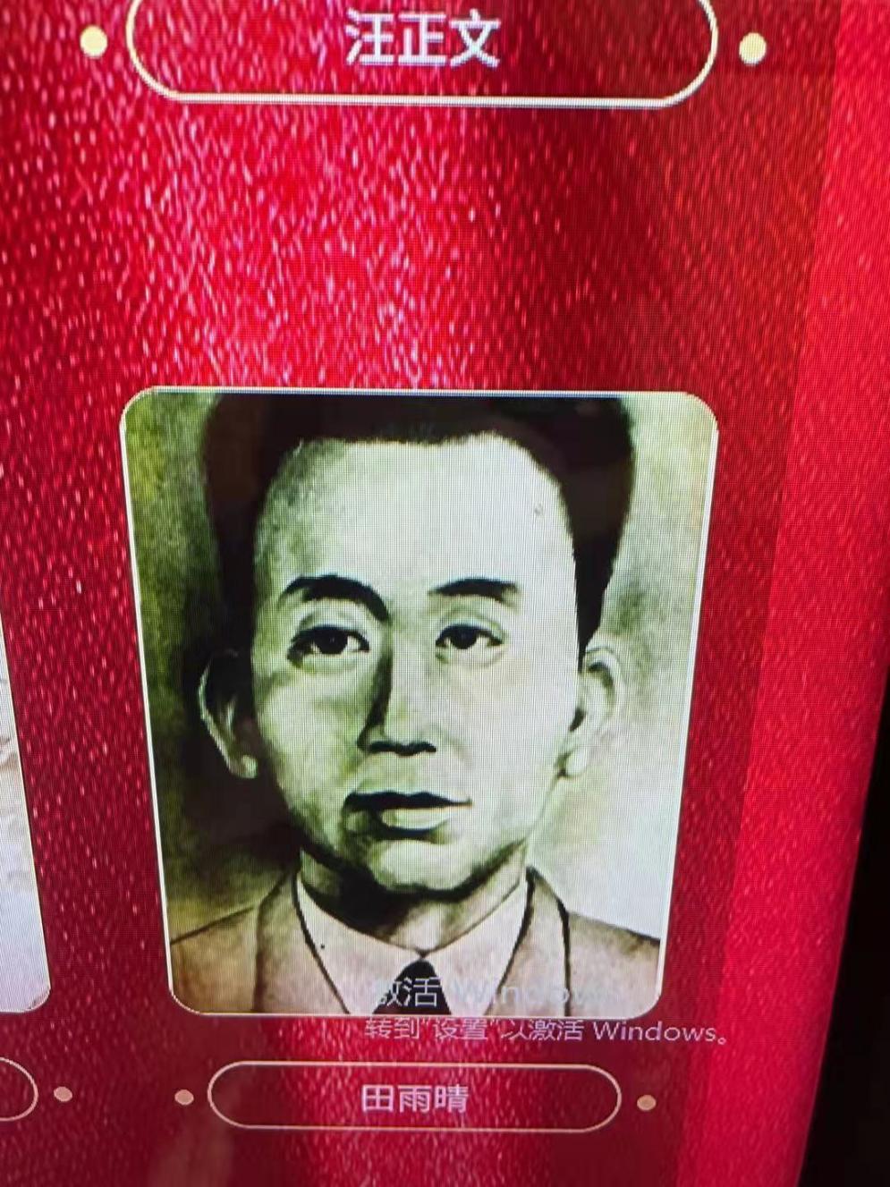 南昌八一起义纪念馆的电子展示屏上有一张田雨晴的画像。